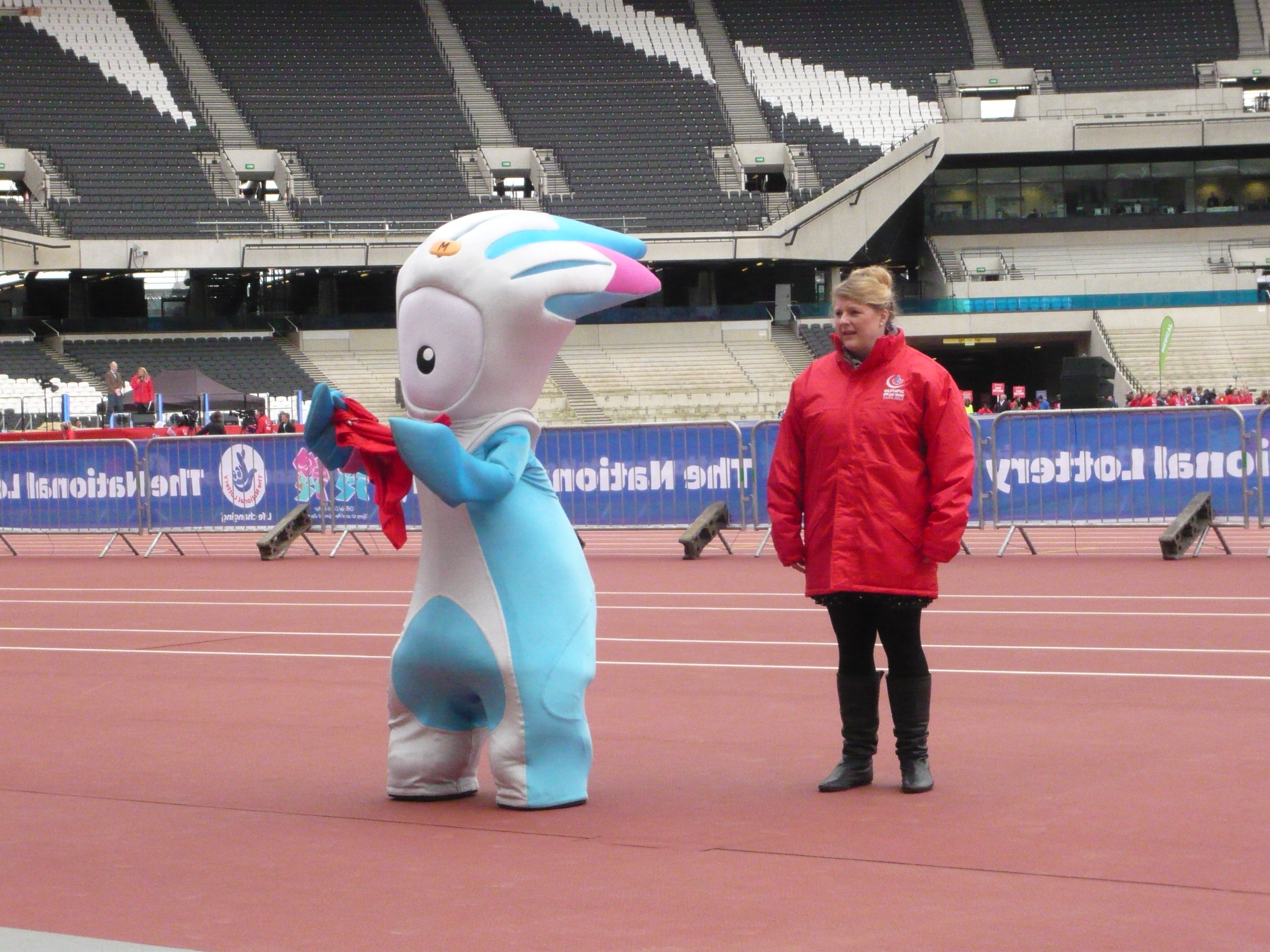Starting outside the stadium we ran around the velodrome, aquatics centre, water polo & hockey arenas, Copper Box, media centre, basketball hall, the Orb and RUN sculpture. We were entertained by steel bands, quartets, brass bands and rockers on the run route. The stadium entertainment was hosted by Ewan Thomas and Holly Willoughby with many BGT finalists including Flawless, cheerleaders girls quartet, singers and the Olympic mascots.