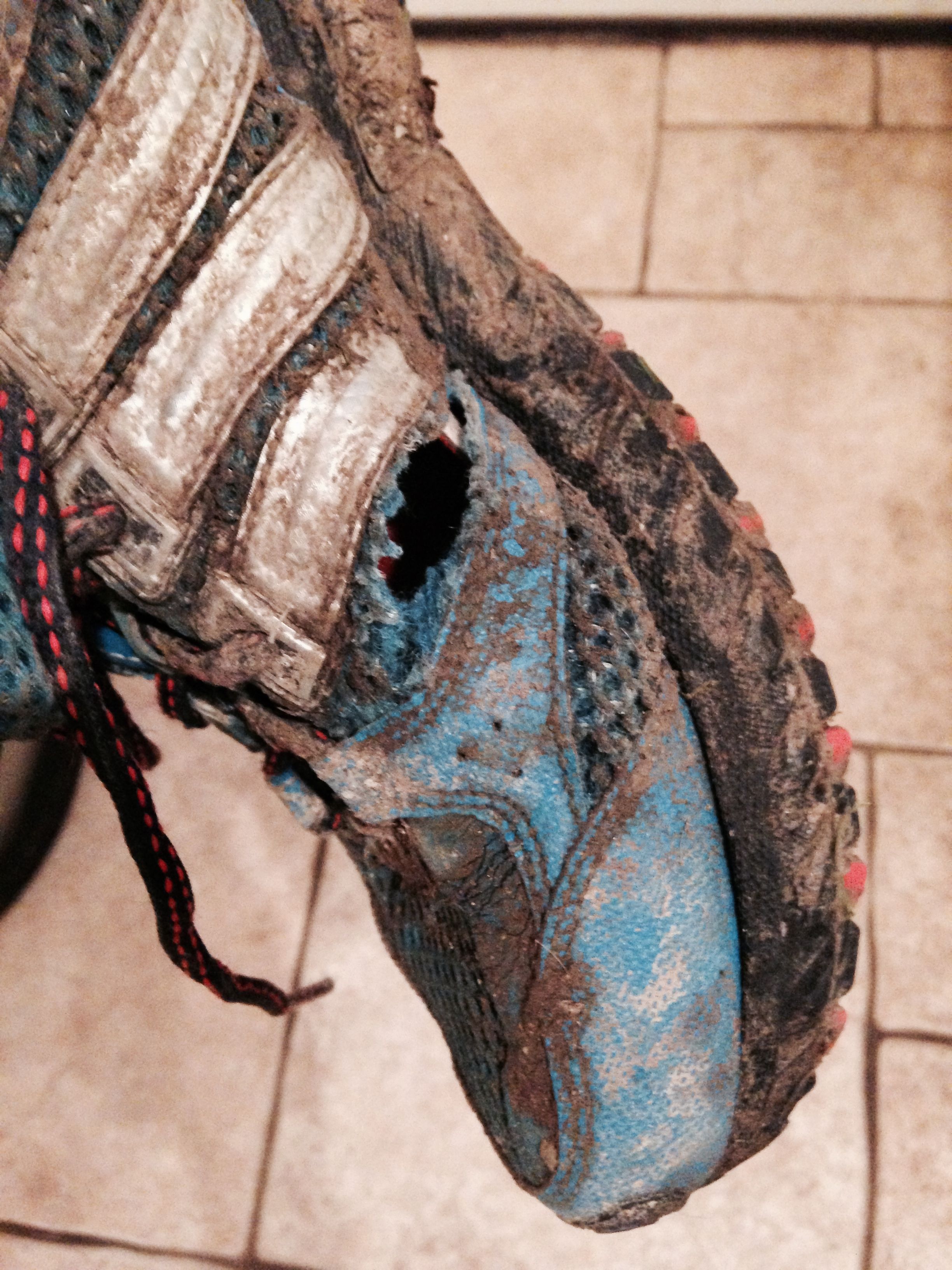 As I laced up my trusty sure footed Adidas trail shoes they felt a bit breezy down the sides. On closer inspection they had two splits in each shoe and the soles were both starting to peel off.