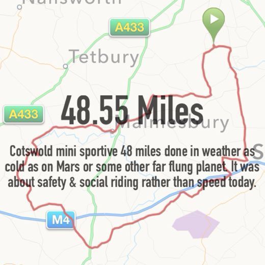 Although as I sit here and type I can still feel the icy effects of that wind that penetrated my muscles and I again realise how much energy the cold can take out of you. My average speed was well down, on these lanes in summer I zip around and manage 50 miles in well under 3 hours, yesterday 48miles took me 3 hours 19. OK it was very cold, windy at times and I was on my heavier winter bike with winter tyres, mudguards and I’m carrying some winter weight gain myself, but hopefully as I shed the weight from me and the bike I will fly again in summer and these winter rides all count as solid strength training. As I had mudguards I was mostly riding at the front taking the wind and giving my companions a clean ride behind me.