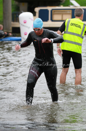 Swim – river swim was two thirds upstream and quite narrow in places with weeds and boats lining the riverbanks, swans leading us out then flying back overhead, drinking cows lining the riverbank and a couple of swimming dogs. Lots of spectators cheering from river bank & boats.