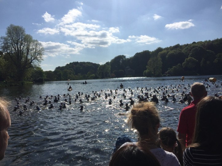 Stourhead was a great location very picturesque and the lake was warm as we swam to the deep water start line. Under water was like an asteroid field with balls of weed/ clumps floating around us. As soon as we barged our way around the first buoy the lake floor rose and so did the muck as we hit shallow patches and visibility disappeared.