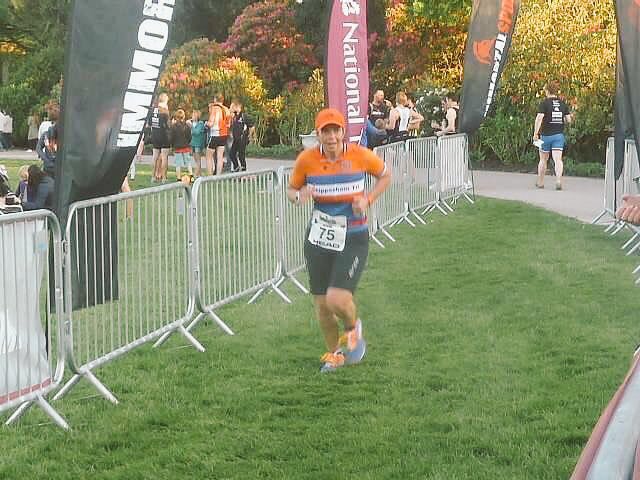 T2 came around just after the hour on the bike I saw family & club supporter and with a wave was off on the 4.5 mile trail run. Only I was floored within 5meters as I was turning my race belt round it fell down to my ankles tripping me up!