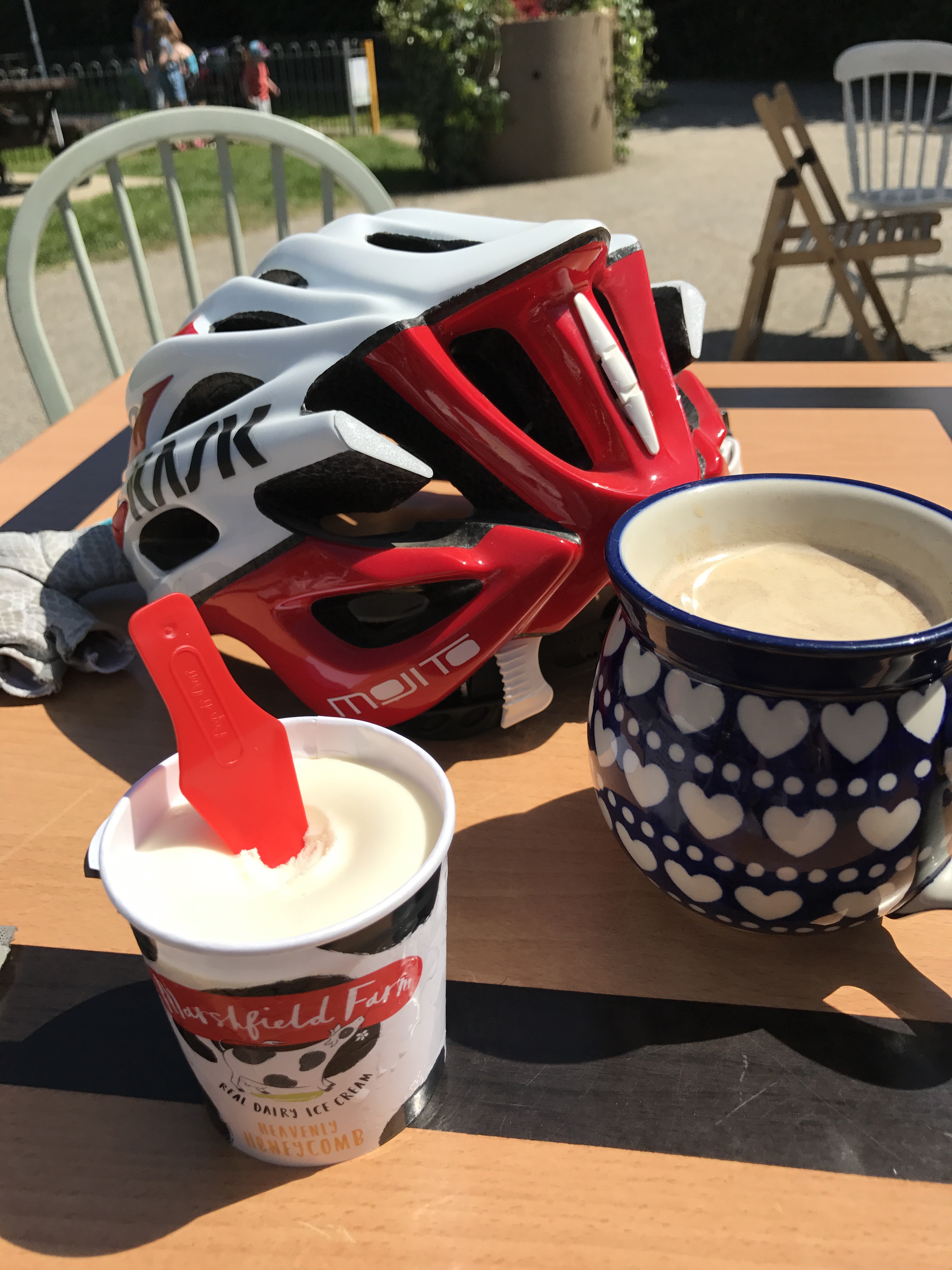 So did my own home tri – a little paddle in dogs pool, a 30mile bike ride for ice cream & coffee to Royal Wootton Bassett. It was so hot 30c that the tarmac was melting on roads and to finish my home tri I did a little walk with Jango in the evening up the lane when cooler.