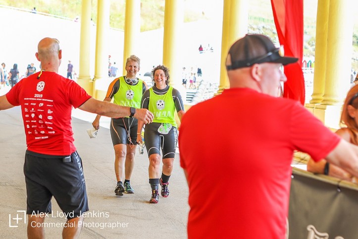 About 3/4 of the way in we were stopped by race control as we had a large swim stretch ahead and the tide was turning against us. I sure they weren’t expecting us to be so excited to be getting a speed boat ride back ! We whizzed past the safety crew and other swimmers and got dropped off at Barry Island beach. We walked back up to the prom where we were greeted as winners and given medals, goody bags, water and hugs.